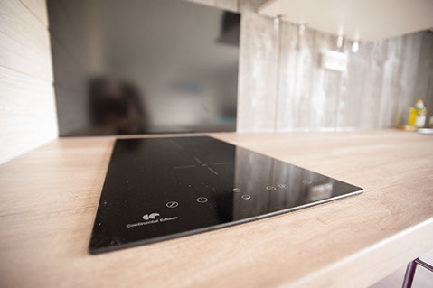 - une cuisine toute équipée (plaques induction, frigo et congélateur, lave-linge, micro onde, grille pain, cafetière)